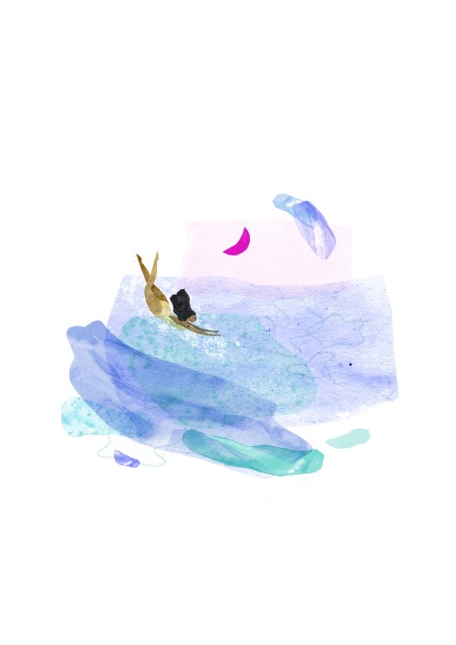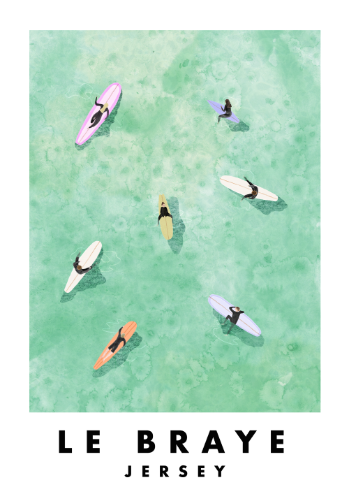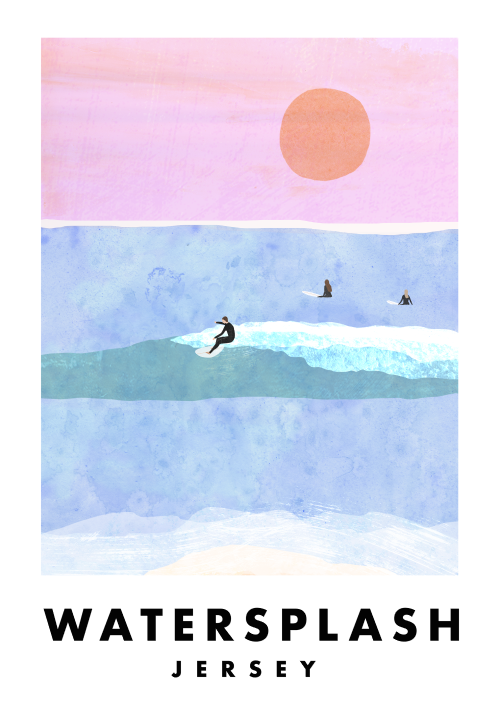 Sarah’s work is inspired by surfing, travel and beach culture. Working primarily with mixed media, and digital collage processes, her practice explores colour and texture aiming to capture a sense of glimmer and the joy of the ocean.